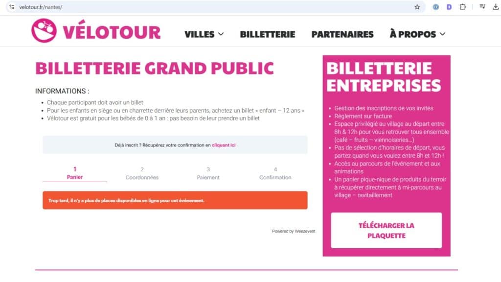 Le Vélotour de Nantes 2025 a déclenché un engouement incroyable : les premières places se sont envolées en seulement 5 minutes après l’ouverture de la … Lire la suite de Nantes : la billetterie du Vélotour 2025 épuisée en quelques minutes