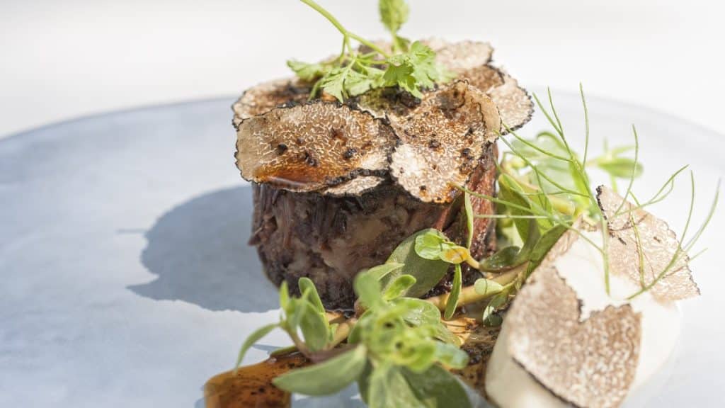 Selon le chef Jean-François Le Ruyet, « une assiette réussie est une histoire courte entre un produit, un souvenir et une surprise ». En témoignent plusieurs plats phares de la carte :